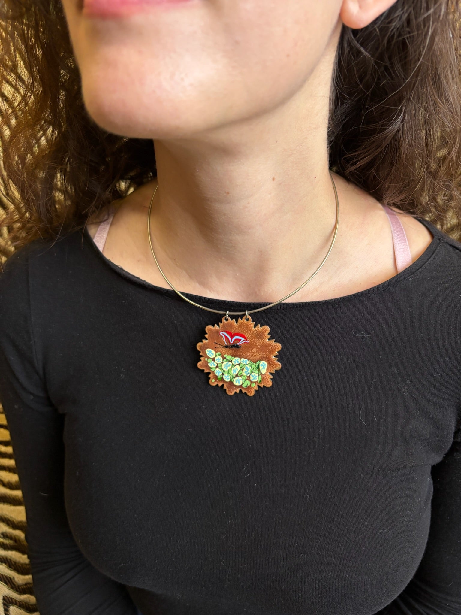 Pendant 3" Diameter , Neck wire 5" circumference.