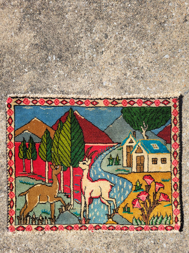 • Vintage Persian Pictorial Scatter Rug